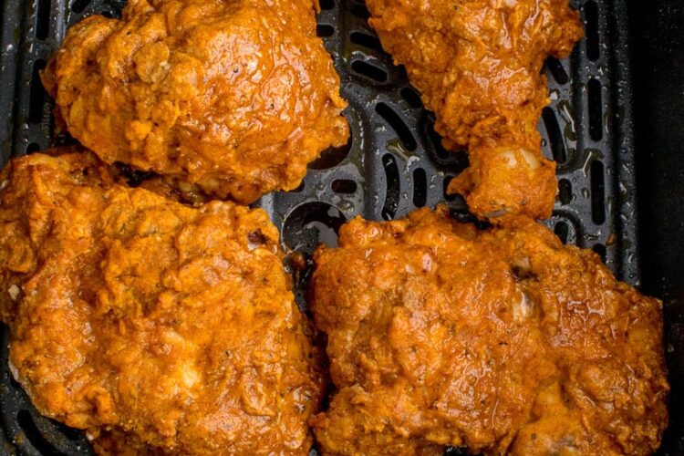 - Chicken should be golden brown and crispy.