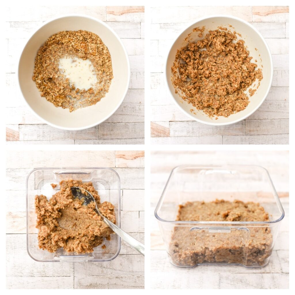 2. Add the milk and flatten down to create the base