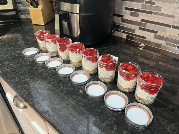 • Remove the jars from the oven and refrigerate for about 4 hours to allow the cheesecakes to set.